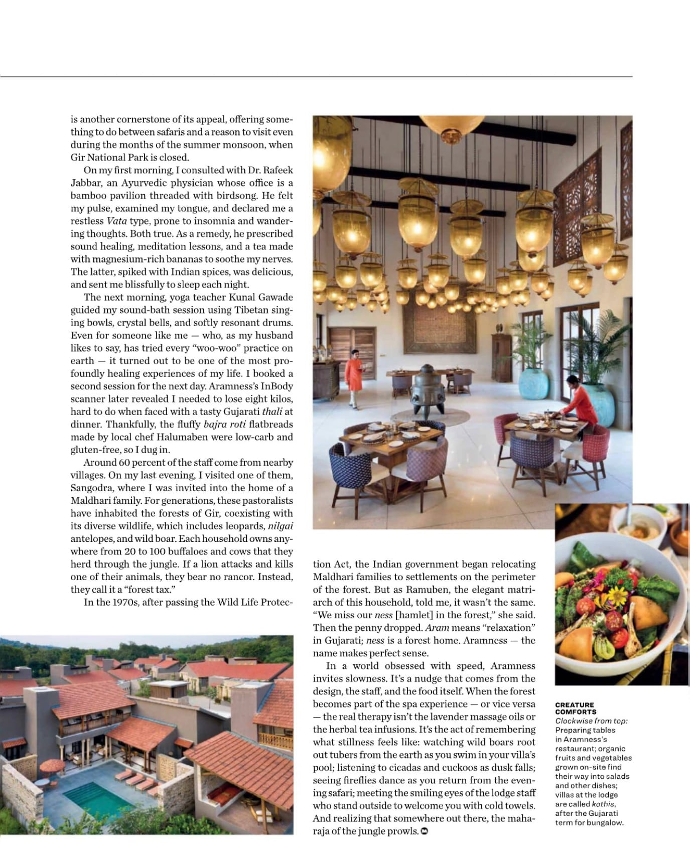 What does a guest do between safaris? At most lodges, the answer simple: wait. Aramness decided to change that, creating a wellness program to attract guests during the summer monsoon, when Gir is closed.