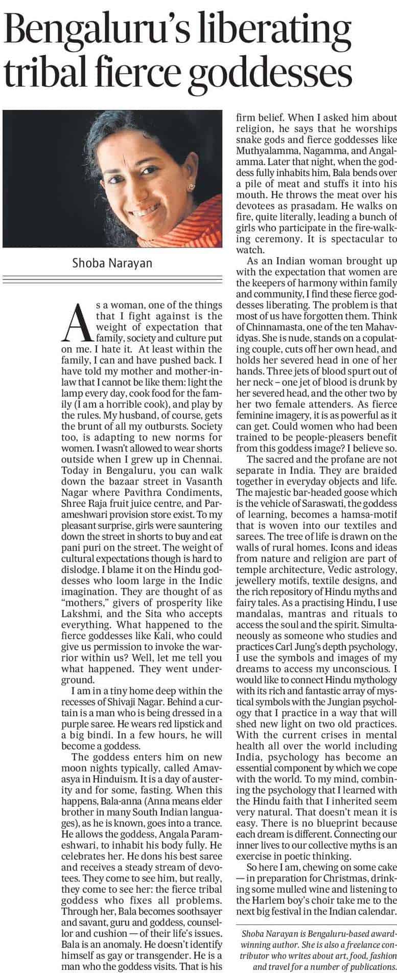 Shoba Narayan is Bangalore-based award-winning author. She is also a freelance contributor who writes about art, food, fashion and travel for a number of publications.