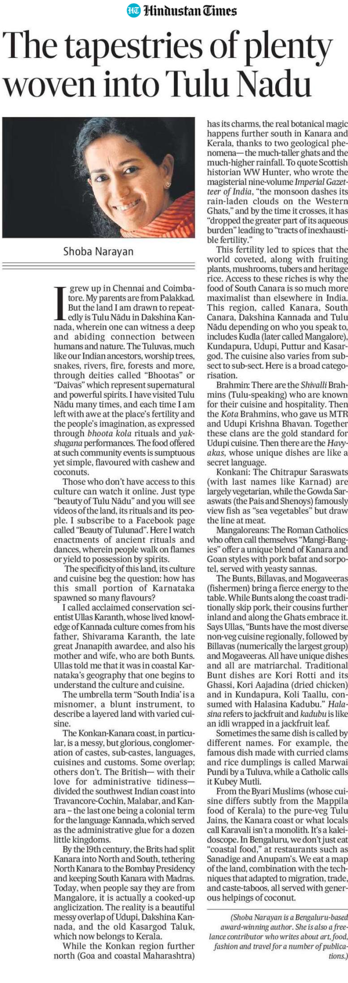 Shoba Narayan is Bangalore-based award-winning author. She is also a freelance contributor who writes about art, food, fashion and travel for a number of publications.