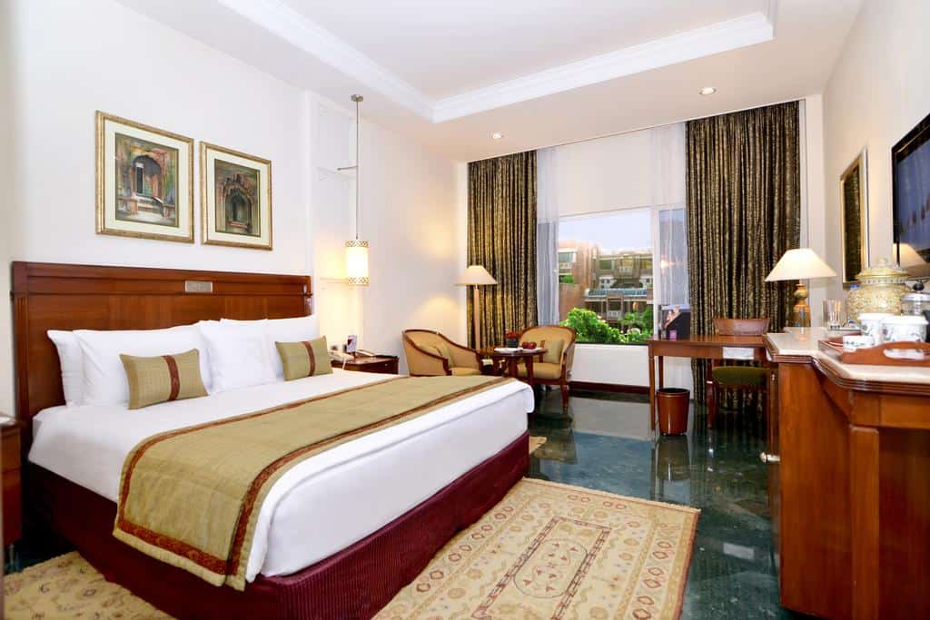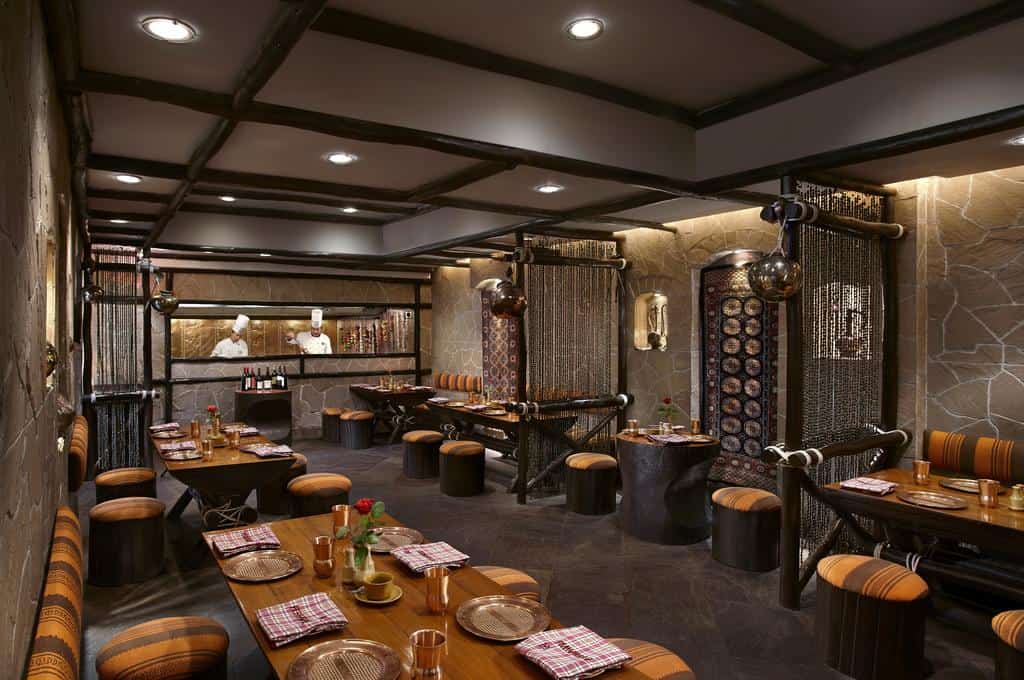 This hotel evokes the spirit of Rajasthan through the use of riotous colour, mural paintings, excellent Indian cuisine, and folk music every evening. The rooms with jewellery motifs, outdoor swimming pool and the pomegranate-themed spa offer respite from the desert heat.