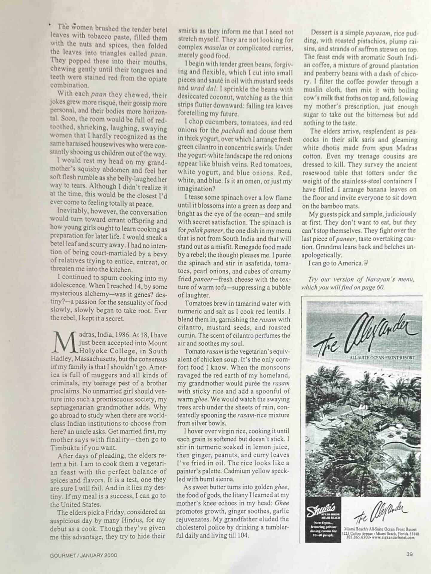 This essay won me a James Beard MFK Fisher Award for Distinguished Writing. My first book, Monsoon Diary, based on this essay was nominated for a James Beard Award also.
