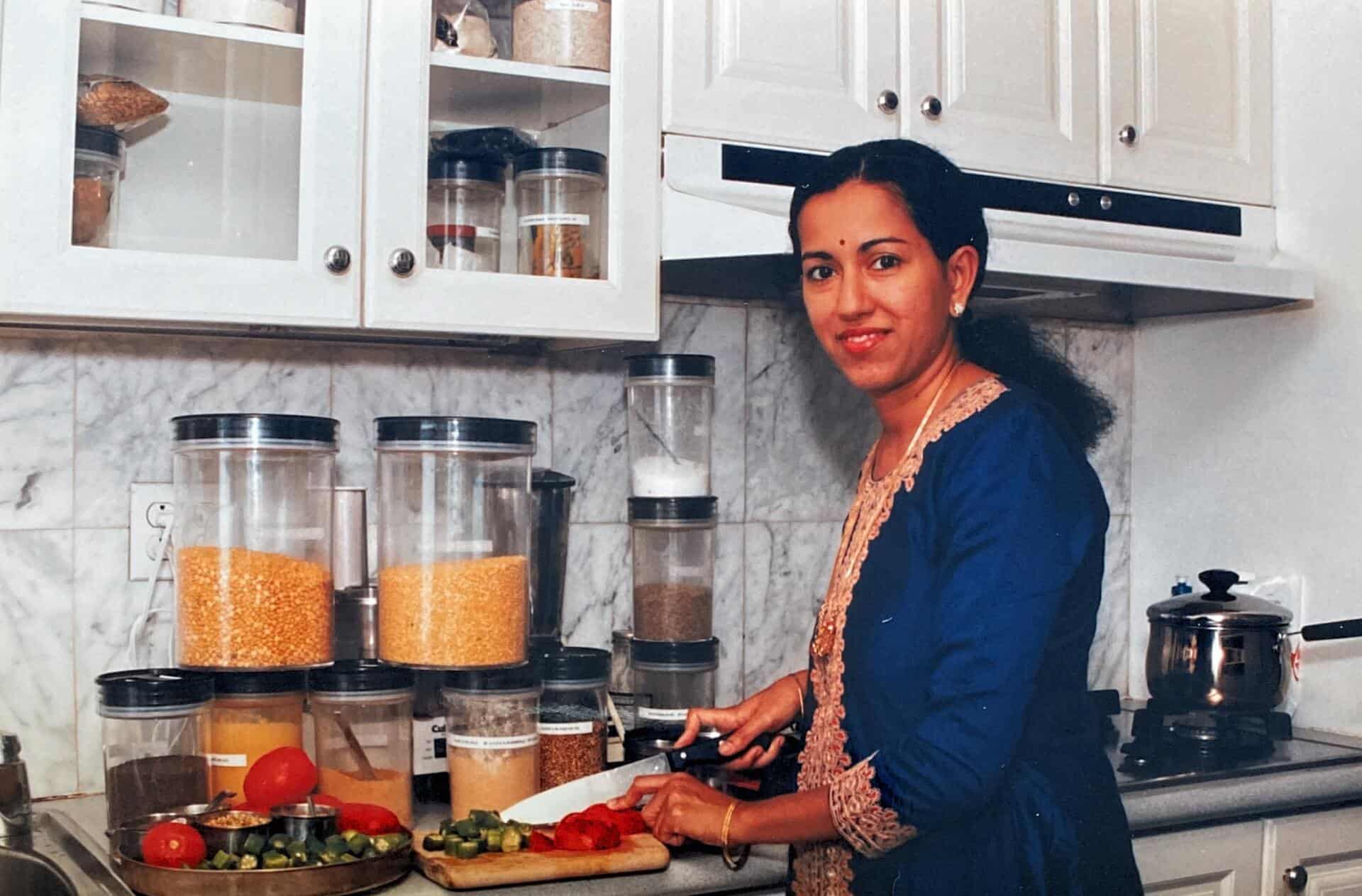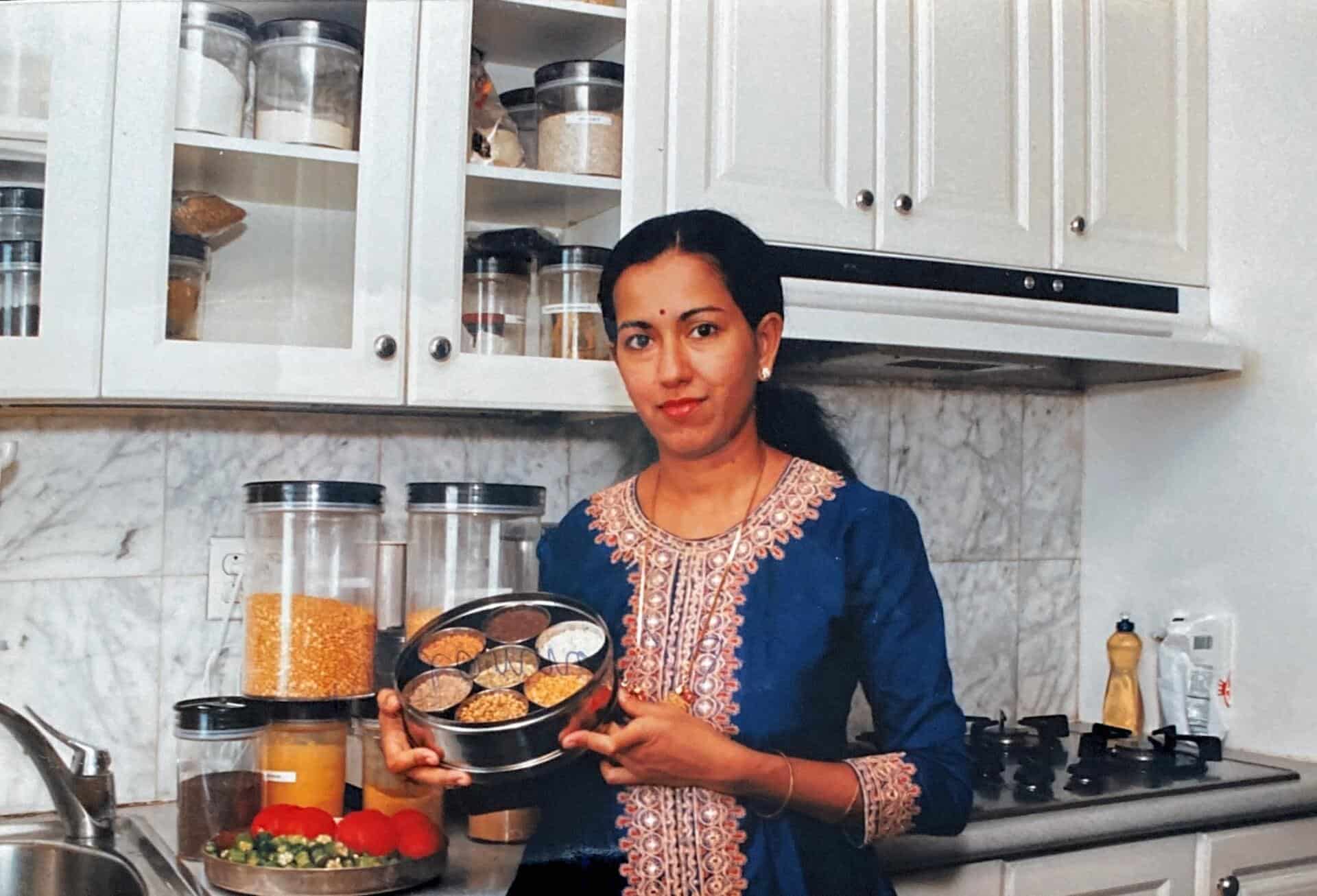 We were standing in our cavernous kitchen, the mosaic-tiled floor cool against my bare feet, my mother in her starched cotton sari and me in my pigtails and skirt, ready to flee. On the raw cement walls, smoke from the wood-burning stove left stains in Rorschach-like blotches. My mother was making yet another attempt to reveal to me the mysteries of South Indian cooking. I was more interested in fighting with the boys over cricket balls.