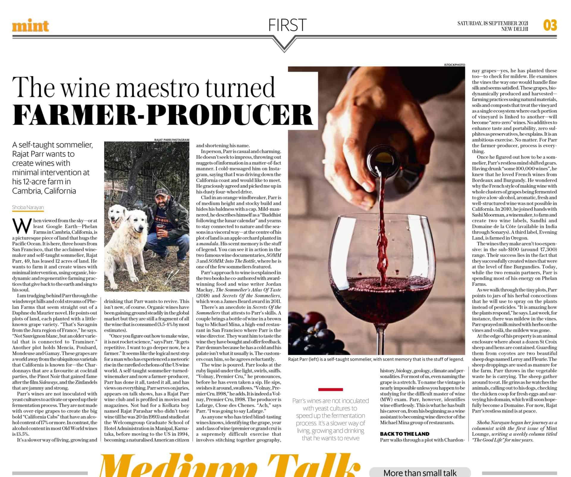A self-taught sommelier, Rajat Parr wants to create wines with minimal intervention at his 12-acre farm in Cambria, California