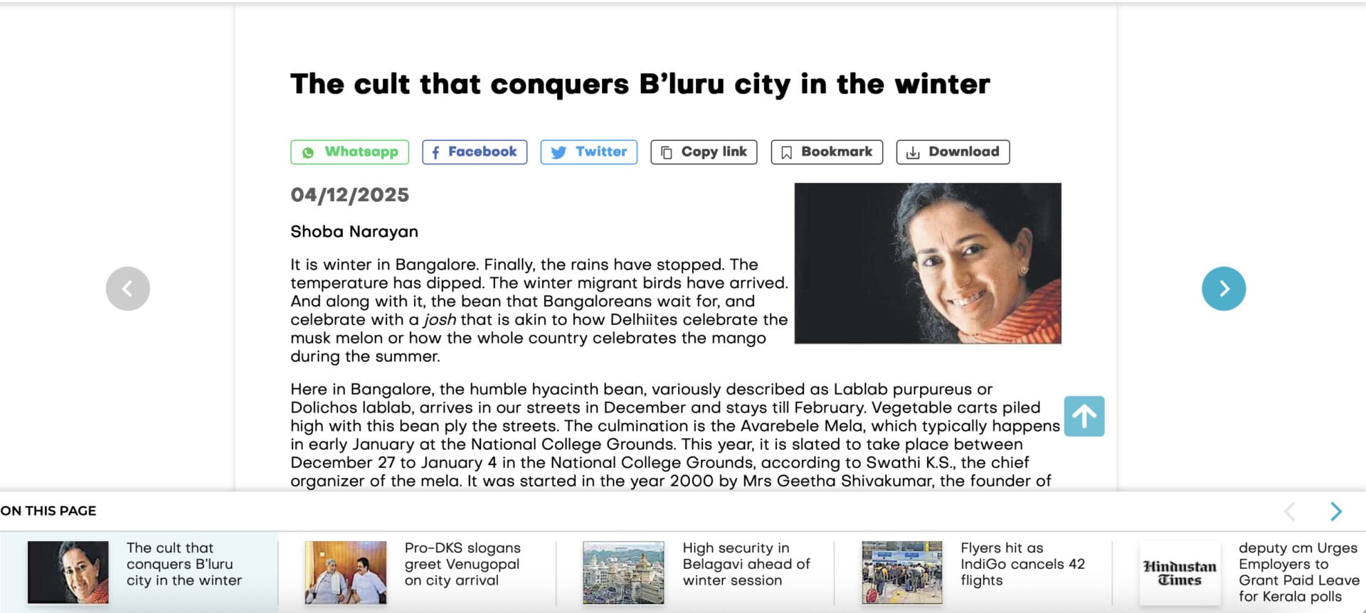Shoba Narayan is Bangalore-based award-winning author. She is also a freelance contributor who writes about art, food, fashion and travel for a number of publications.