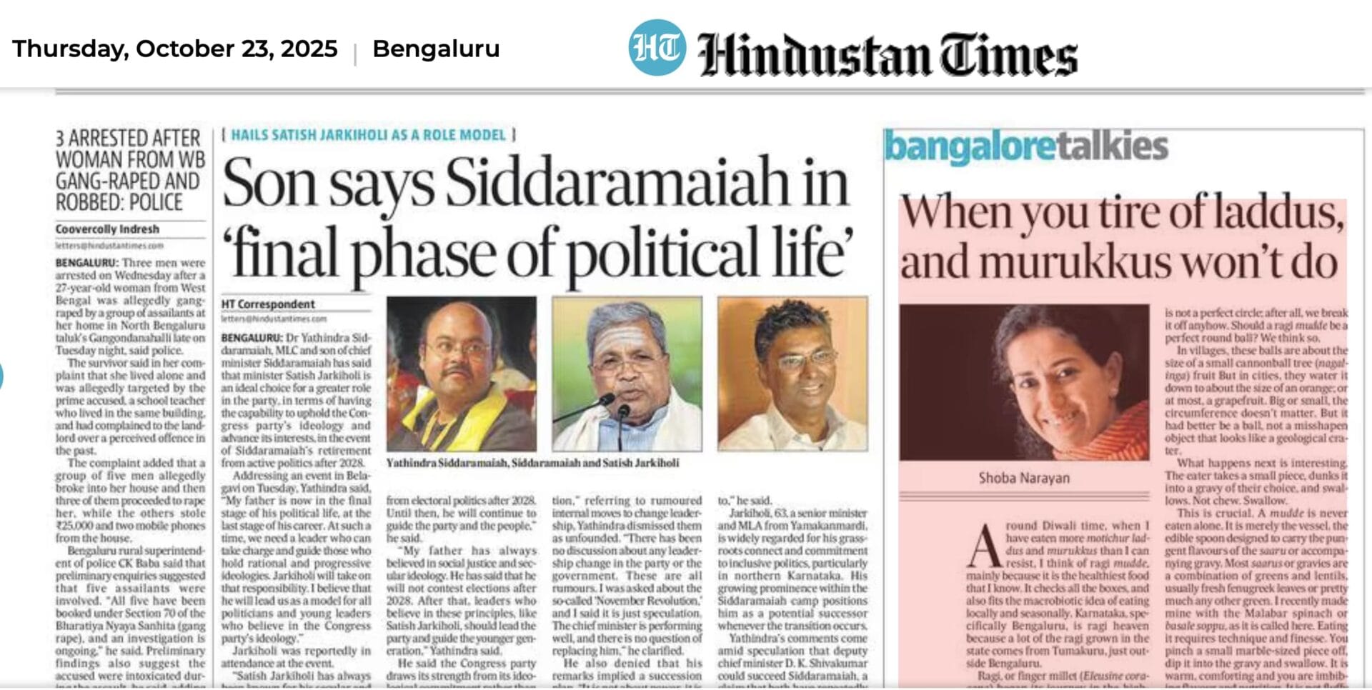 Now millets are making a comeback as a superfood because they are gluten-free, high-fibre, with a low glycemic index, and packed with calcium, iron and other nutritional benefits. The same Bangaloreans who buy quinoa in those expensive artisanal markets are now eschewing that interloping foreign grain for our own millets. The ragi, specifically, is the fairest of them all in my opinion. Well, not literally. It has this beautiful Krishna-colour when it is a grain and grinds to a whitish flour specked with black. Chic Bangalore cafes are serving it as part of millet bowls, and ragi crepes. There are ragi cookies, beer made with ragi, and even ragi pasta. But guess what? The long ragi grass must be chuckling to itself as it sways and shivers in the wind. It hasn’t changed. It remains stoic and humble. We did. We travelled the world, flirted with teff, quinoa and couscous, before finally coming back home; before realizing that the treasure we sought was here all along. The old farmer in Mandya knew it, the Kannada ajji or grandmother knew it. Now, finally, the pilates-doing acai-bowl-eating leotard-wearing wellness-warriors of Bangalore are rediscovering this ancient grain. And the humble ragi mudde is having the last laugh.