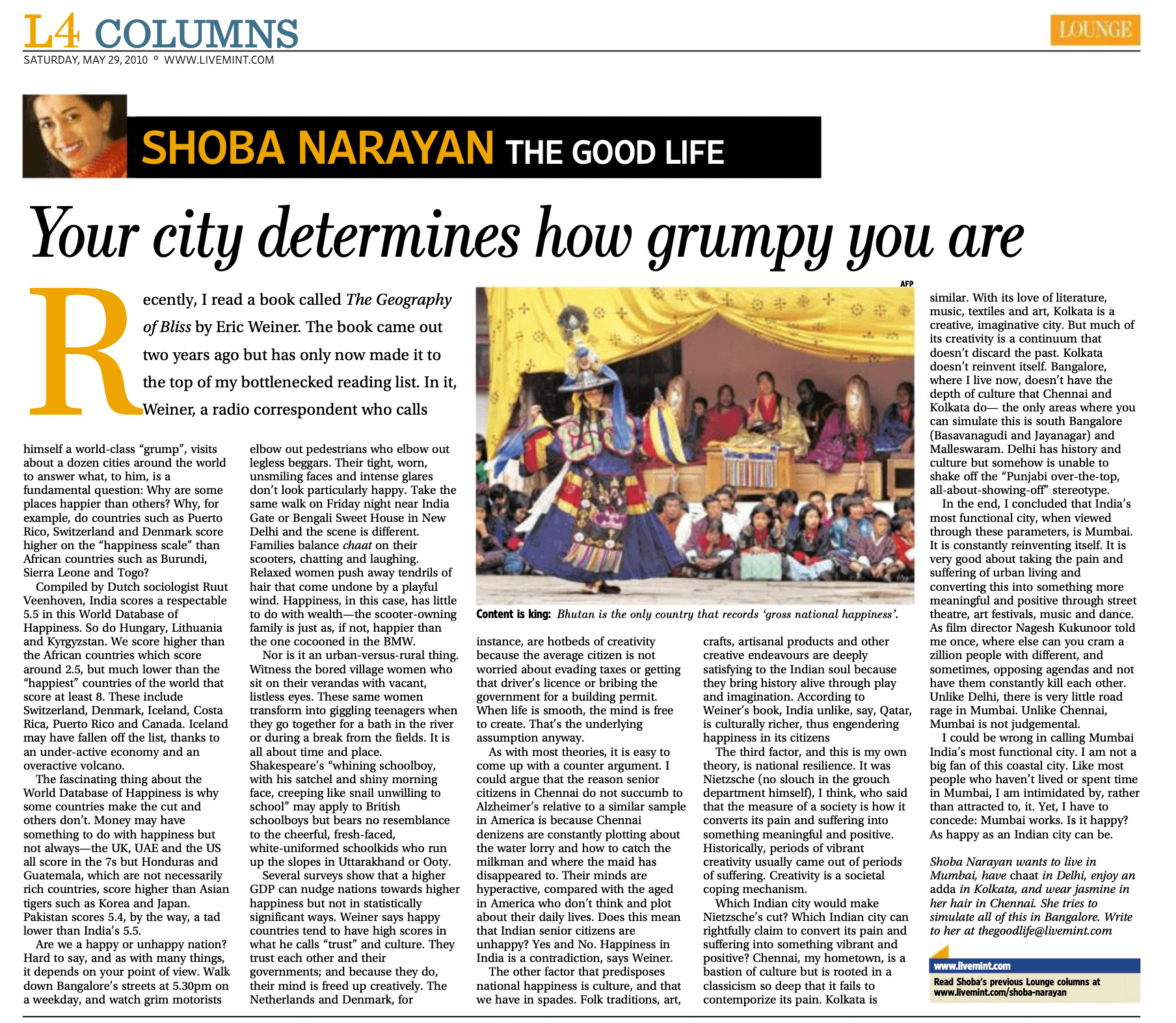 4 min read . Updated: 27 May 2010, 08:30 PM IST The Good life | Shoba Narayan